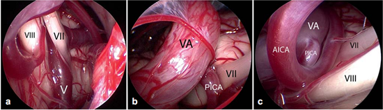 Figure 6不同类型的血管压迫。Ⅶ=面神经;Ⅷ=蜗神经