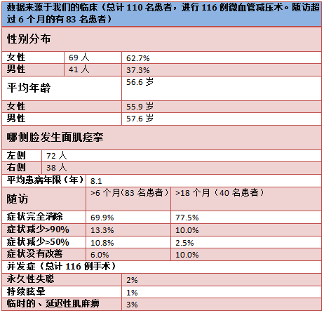 结论:局部肉毒毒素注射是一种安全的、接受度高的治疗面肌痉挛的对症疗法。然而,长期来看,只有微血管减压术能实现长期有效,这是一种相对低的风险和较高成功率的显微外科手术治疗。
